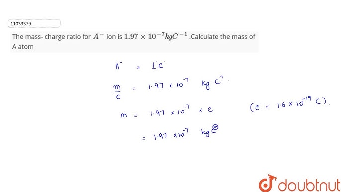 The Mass To Charge Ratio For A Ion Is 1 97xx10 7 Kg C 1 Calculate The Mass Of A Atom Youtube